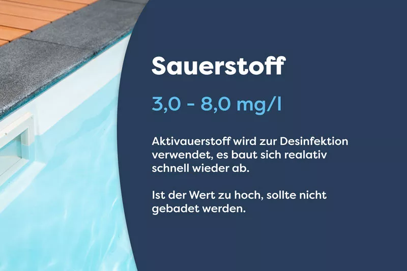 Hier spielen pH-Wert und die Alkalinität ebenso eine wichtige Rolle, freies und gebundenes Chlor dagegen nicht. Dafür aber andere Parameter, etwa der Sauerstoffgehalt oder der Anteil an Wasserstoffperoxid im Poolwasser.