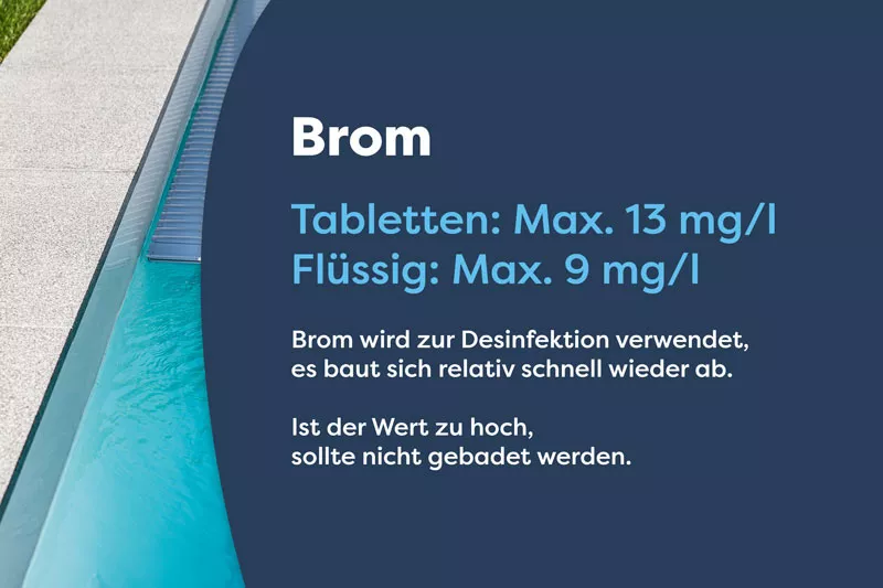 - Für Whirlpools: Der Brom-Wert: Max. 13 mg/l